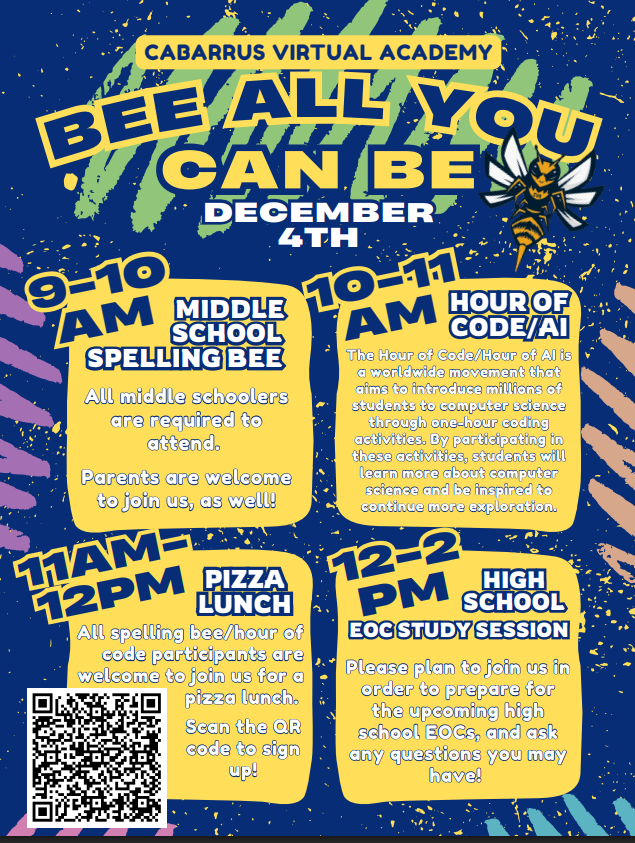 December 4 - Middle School Spelling Bee 9:00 am and High School Math III EOC session 12 - 2